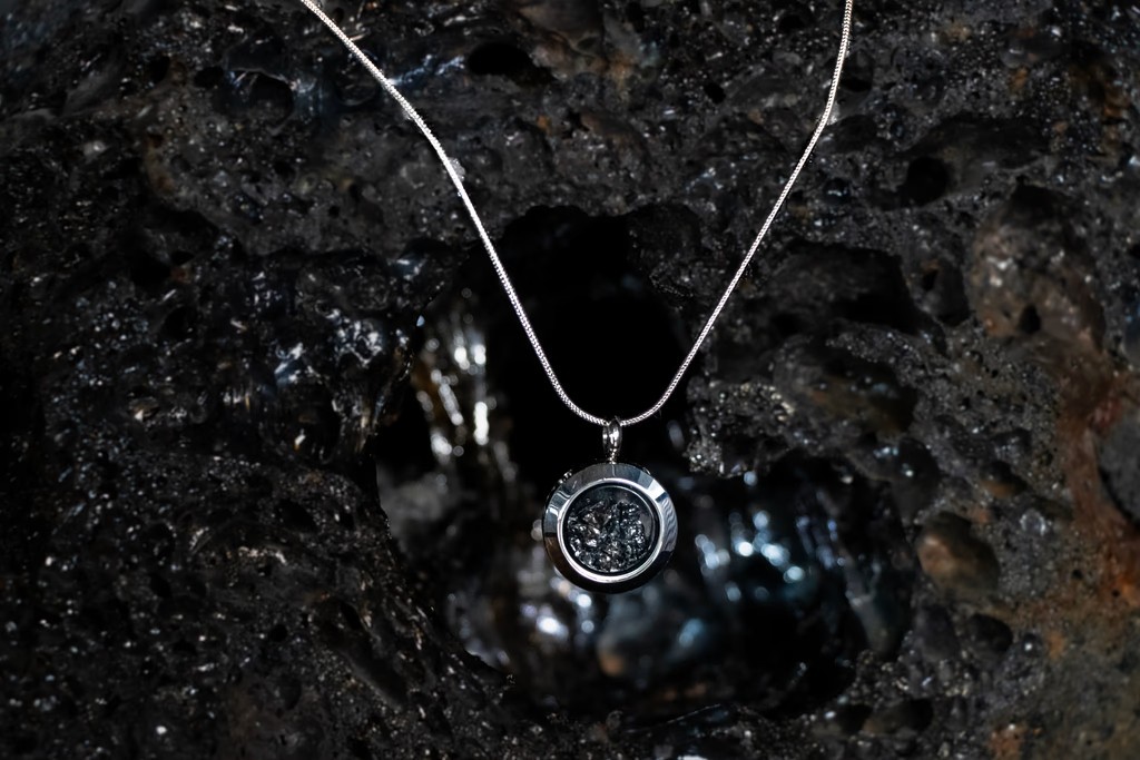 One of the most extraordinary pieces we’ve ever created, the Dragon Glass Necklace is a true volcanic masterpiece. Its stainless steel frame holds a striking core of obsidian — a dark, glass-like lava material created by our founder, Júlíus Ingi Jónsson (“Mr. Lava”), by melting Icelandic rhyolite.